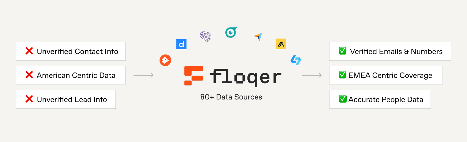 Floqer enriched records with 80+ data sources, from business registries to industry‑leading EMEA providers.