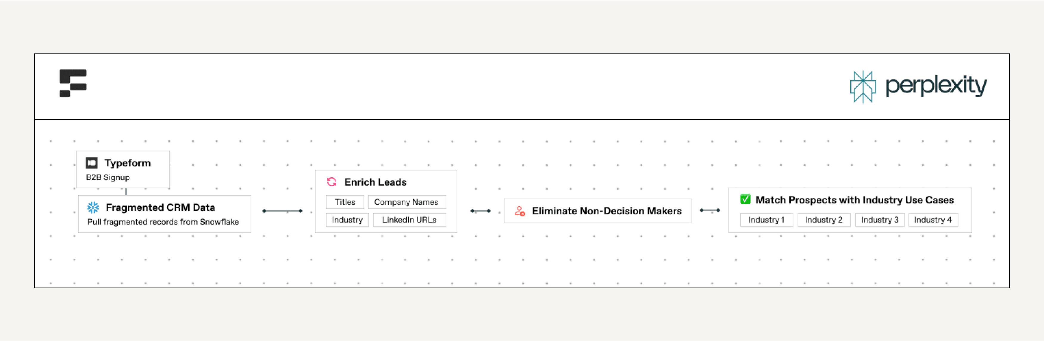 A workflow to route each prospect to the right campaign by matching them with industry verticals, where Perplexity offers specific use cases. To make it easy to send each prospect into the most relevant campaign for their needs.